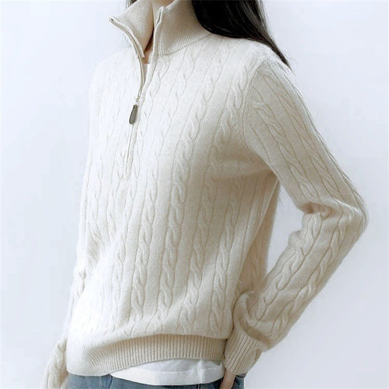 Women's Sweater Pullover Elegant Fashion Cute Solid Color Turtleneck Zipper Knitted Long Sleeve Regular Tops Knit Outdoor Home Work Blue Black Fall Winter