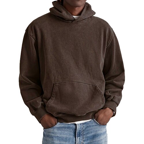 Felpa vintage da uomo, 100% cotone, con cappuccio, lavaggio acido, albicocca, nero, rosa, rosso, semplice, con tasca, sportiva, per attività all'aperto, quotidiano, vacanza, basic, casual, autunno, inverno, abbigliamento