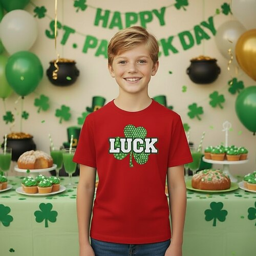 100% Cotone Giorno di San Patrizio Bambini Ragazzi Blu Nero Bianco Grafico Trifoglio Giorno di San Patrizio Maglietta Blusa Girocollo Manica Corta All'aperto Abbigliamento Quotidiano Moda Streetwear