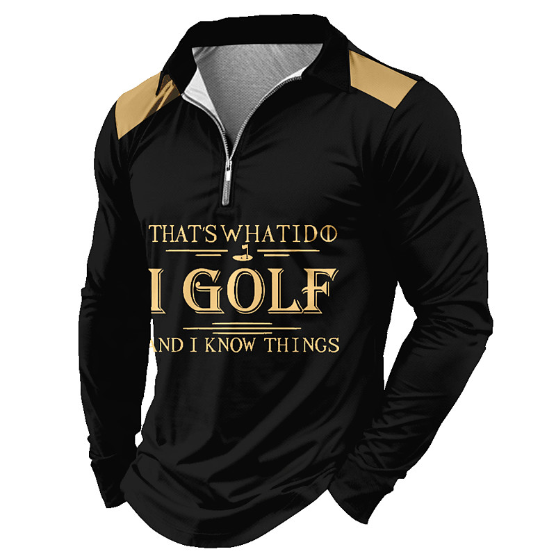 Men's Golf Long Sleeve Quarter-Zip Polo Shirt I Golf And I Know Things Humorous Graphic Tee