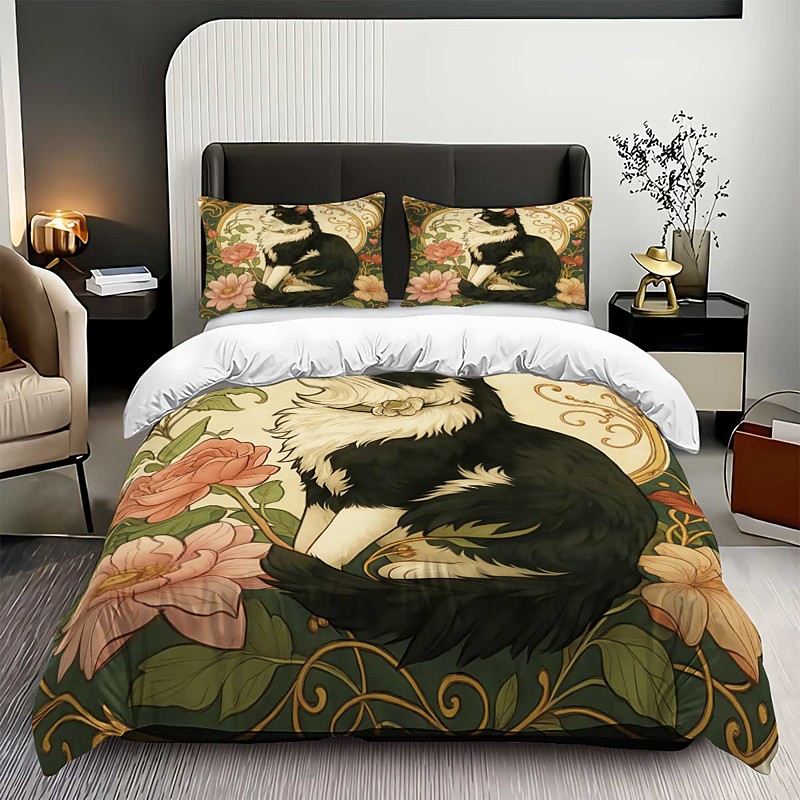 Purple Floral 3-Piece Down Duvet Cover Set for Queen Bed, Soft Comforter Cover with 2 Pillowcases – Hotel Guest Room Bedding, Cozy Comfortable