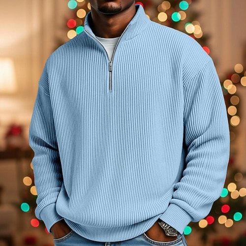Per uomo Camicia di Velluto a Coste Polo Vacanza Streetwear Zip a un quarto Manica Lunga Moda Essenziale Tinta unica Cerniera Autunno Primavera Autunno Autunno Inverno Vestibilità comoda Nero