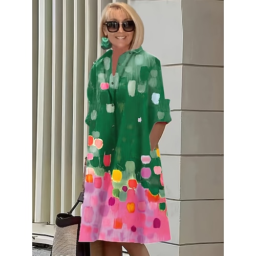 Per donna Abito Midi Vestito T-Shirt Vacanza Compleanno Casual Spiaggia Uscire Vestibilità comoda Grafico Astratto Manica Lunga Bavero Blu Rosa scuro Verde Estate Primavera
