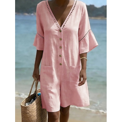Per donna Normale Tuta Attivo Tinta unica Mezza Manica Gamba larga Scollo a V Quotidiano Spiaggia Vestibilità comoda Blu Nero Rosa Estate