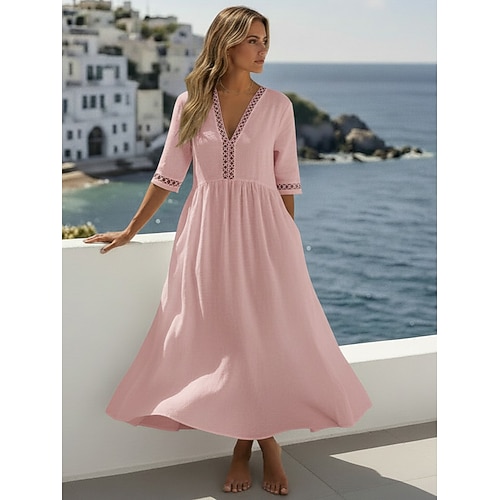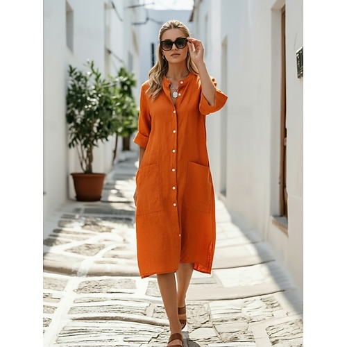 Per donna Abito Midi 100% cotone Abito a Tubino Abiti in cotone e lino Vestito Casual Essenziale Classico Casual Quotidiano All'aperto Vacanza Vestibilità comoda Semplice Mezza Manica Scollo a V