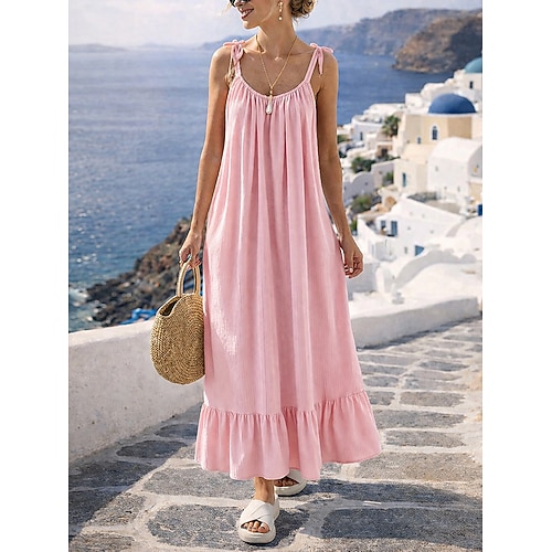 Per donna Abito maxi Abito a trapezio Abito Estivo Abito Sottoveste Casual Quotidiano Vestibilità comoda Semplice Senza Maniche Girocollo Blu Nero Bianco Giallo Estate