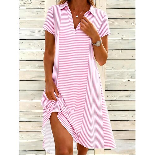 Per donna Mini Abito Abito Estivo Vacanza Casual Boho Quotidiano Spiaggia Vestibilità comoda Grafico A Pois Manica Corta Scollo a V Bavero Rosa Azzurro cielo Verde Grigio Estate Primavera