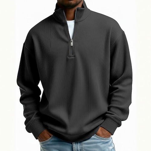 Per uomo Camicia di Velluto a Coste Polo All'aperto Casual Zip a un quarto Manica Lunga Moda Moderno Tinta unica Primavera Autunno Vestibilità standard Vinaccia Nero Verde militare Blu marino Verde