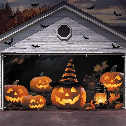 Halloween Copertura per porta del garage Grande appeso Zucca 3D Gotico punk oscuro Da serata All'aperto Sfondi di ripresa Yarda Casa infestata Decorazioni Parete Porta Sfondo