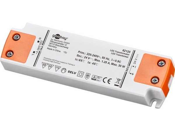 Goobay 62120, Elektroninen valaistusmuuntaja, Oranssi, Valkoinen, IP20, -20 - 45 °C, CE, RoHS Directive 2011/65/EU [OJEU L174/88-110, 01.07.2011, Laatikko