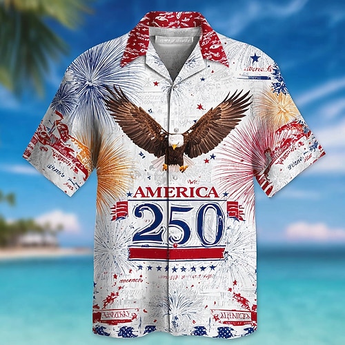 Herren Adler Feuerwerk 250. Jahrestag der Vereinigten Staaten Hemd Knopfhemd Kurzarm Vintage-Retro Outdoor Ferien Sommer Frühling Umlegekragen 3D-Druck Hemden mit Kragen Rote Grün