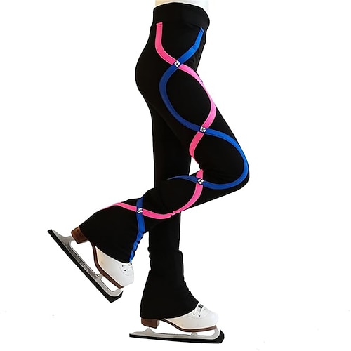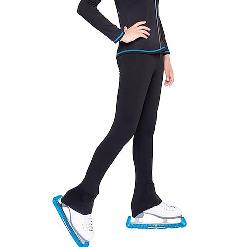 pantaloni da pattinaggio artistico da donna e da ragazza, pantaloni da pattinaggio sul ghiaccio, neri, elastici, abbigliamento da pattinaggio per gare di allenamento, termici, caldi, con