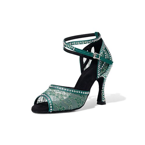 abito da ballo da sala da donna, elegante, a maniche lunghe, in rete di strass, per gare di valzer e tango, nero