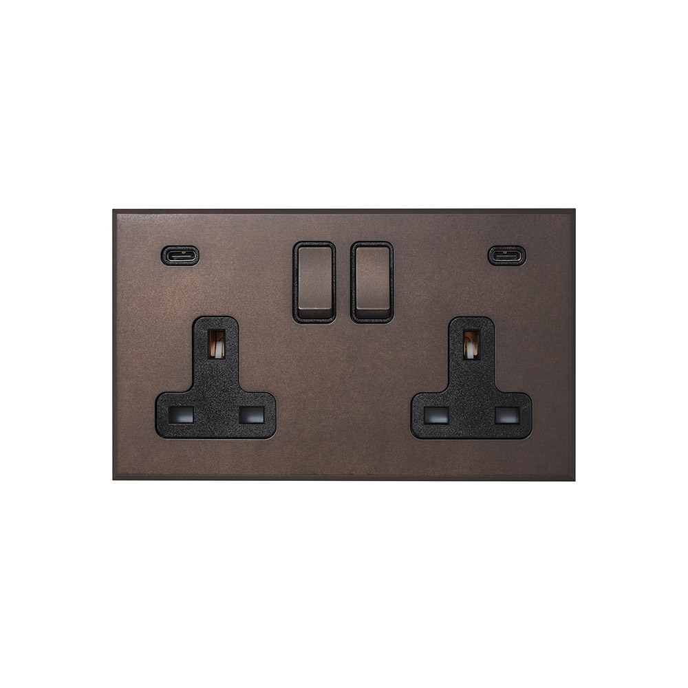 Soho Lighting Heritage Bronze 2 Gang 13A Double Pole Switched Socket 4.8A Type C+C USB Charging with Black Insert - The Palaces Collection - Size: H