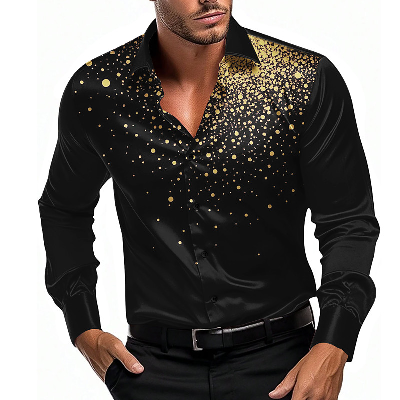Men's Geometric Polka Dot Gradient Shirt Satin Shirt Dress Shirt Long Sleeve Fashion Casual Vacation Dailywear Summer Spring Fall Turndown 3D Print Button Up Shirts WhiteBlack Black Gold Black 1