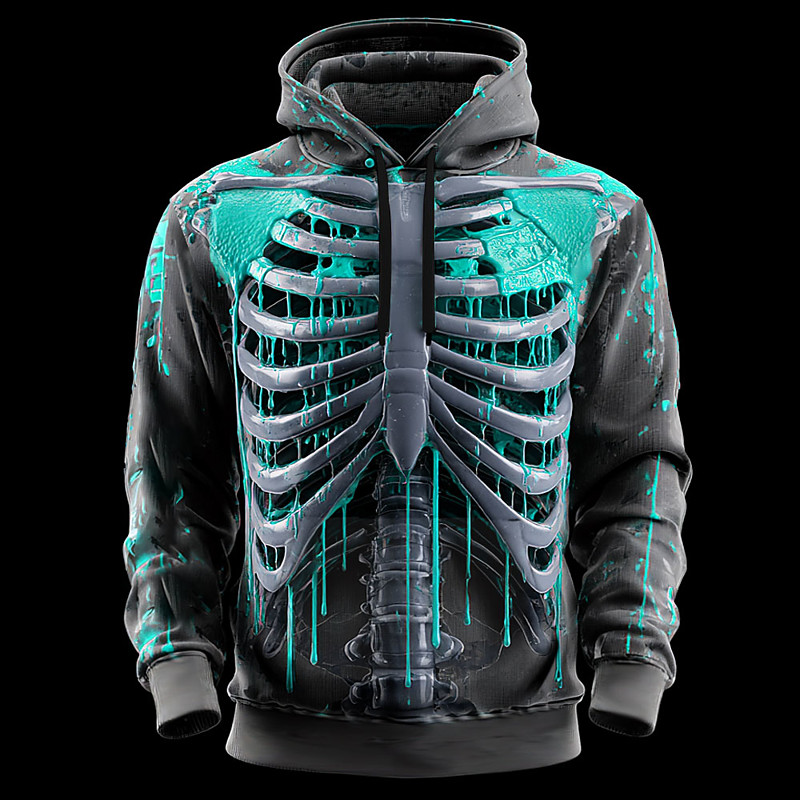Men's 3D Skeleton Hoodie Sweatshirt Punk Exaggerated Gothic Casual Long Sleeve Crew Neck Hooded Club Streetwear Red Blue Orange Green Drawstring Fall Winter Designer S M L XL XXL XXXL