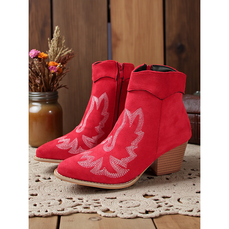 Women's Faux Suede Western Ankle Boots with Embroidered Details – Cowgirl Style Boots for Festivals Country Outfits