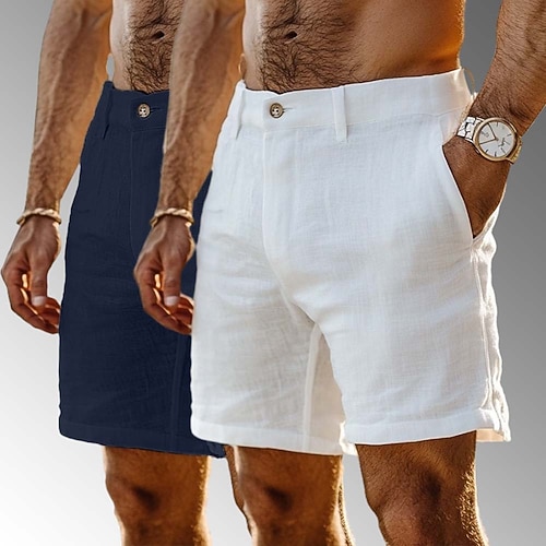 Per uomo Shorts Shorts di Lino Shorts eleganti Pantaloncini Estivi Shorts da Spiaggia Tasca Bottoni Gamba Dritta Semplice Comodità Traspirante Lunghezza al ginocchio All'aperto Casuale Quotidiano