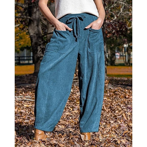 Per donna Gamba larga Pantaloni Eleganti Streetwear Casual Lunghezza intera Naturale Semplice Tasca Design con Coulisse Elastica Comodo Streetwear Ferie Rosso violaceo Nero Verde militare Marrone