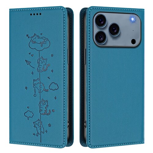 Handy Hülle Handyhüllen Für iPhone 17 Air 17 Pro Max iPhone 17e 16 15 14 Pro Max Plus 16e 13 Pro Max Mini Brieftaschenhülle Stoßfest Katze TPU PU-Leder