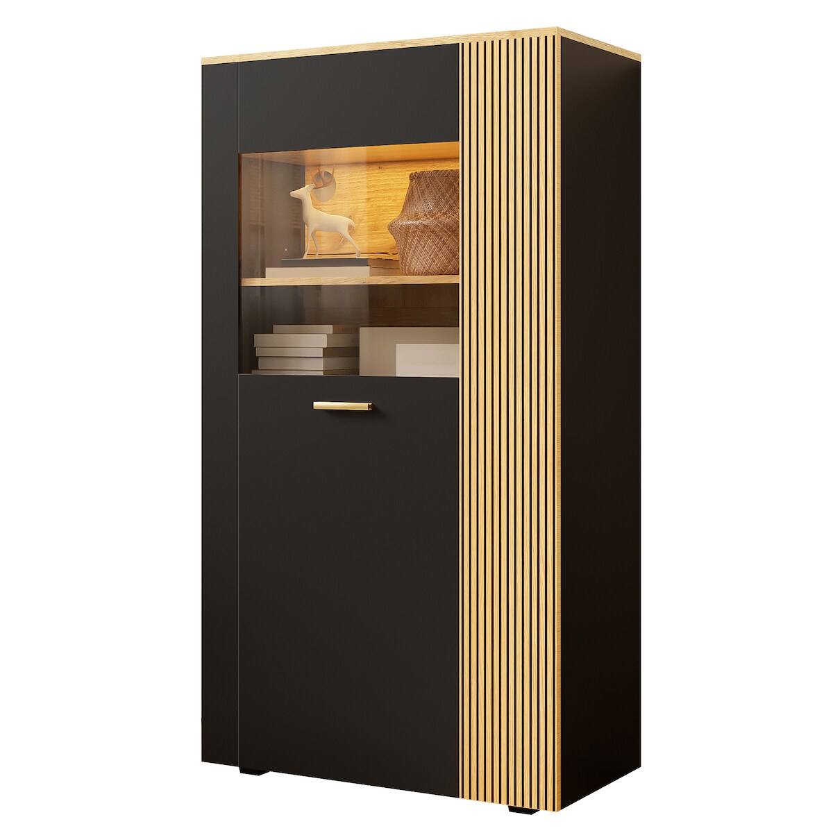 Vitrine HOME AFFAIRE "Rondo, Showcase, Parsol-Sicherheitsglas, integrierte LED-Beleuchtung", cashmere farbe, B:94cm H:180cm T:40cm, Glas, MDF, Metall, Spanplatte, Schränke, Vitrine, UV lackiert, Soft Close Funktion, Metallrahmen als Basis des Elements