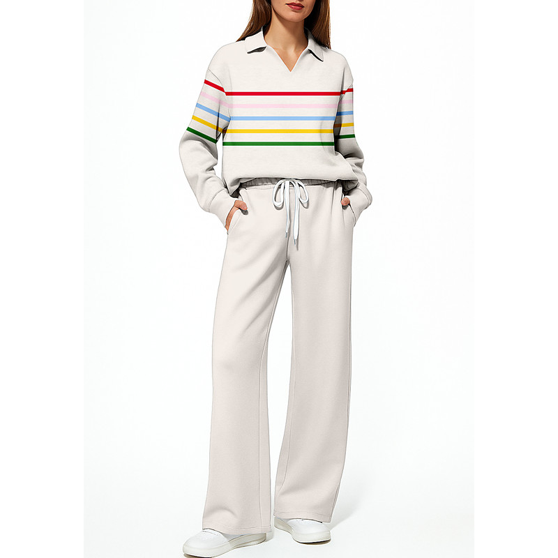 Women's Sweatshirt Tracksuit 2 Piece Tracksuit Drawstring Pocket Striped Athletic Clothing Set Clothing Suit Fall White Vocation Outdoor Travel Lightweight Fashion Long Sleeve Sport Activewear