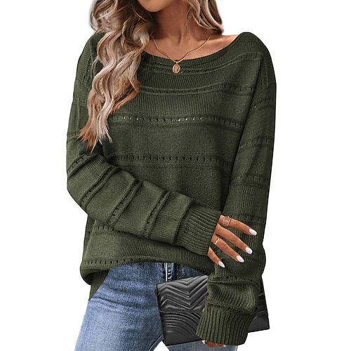 Per donna Felpa Maglione Streetwear Casual Colore Puro Girocollo Traforato Lavorato a maglia Manica Lunga Top Regolari Maglia Quotidiano Ferie Weekend Nero Rosa Autunno Inverno