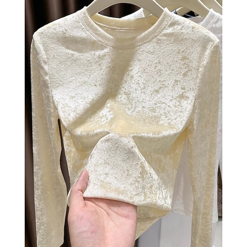 Per donna Velluto Elegant Elegante Blusa Semplice Elegante Vintage Quotidiano Manica Lunga Girocollo Top Regolari Quotidiano Ferie Uscire Nero Bianco Blu Cachi Albicocca Primavera Autunno Inverno