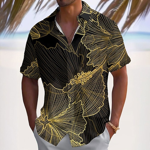 Per uomo Albero di cocco Piante tropicali Camicia Camicia hawaiana Camicia Aloha Manica corta Camicia Collo ripiegabile Di tendenza Hawaiano Originale Esterno Strada Informale Nero Bianco nero