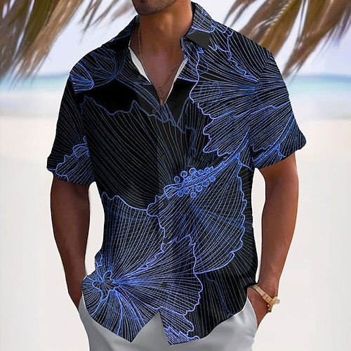 Per uomo Sfumatura Albero di Cocco Piante Tropicali Camicia Camicia hawaiana estiva Camicia Aloha Manica Corta Camicia Collo ripiegato Tropicale Moda Hawaiano Casuale Spiaggia Camicia hawaiana Blu