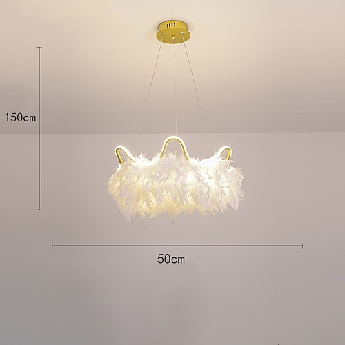 lampadario a sospensione a led dimmerabile 50cm Lampada a sospensione a bouquet di piume bianche a 1 luce romantica apparecchio di illuminazione montato per la camera da letto del ristorante