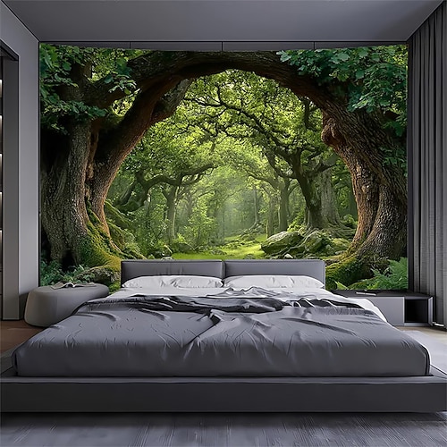 arazzo aurora boreale aurora boreale foresta di pini cielo notturno arazzo da parete natura paesaggio decorazione per camera da letto soggiorno sala yoga spazio per meditazione