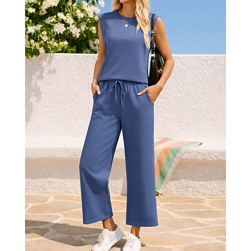 Per donna Set di tute e pullover Tuta da 2 pezzi Abiti da salotto Coulisse con tasca Tinta unita Set di Abbigliamento Sportivo Estate Primavera blu navy Nero Allenamento in Palestra Jogging Corsa