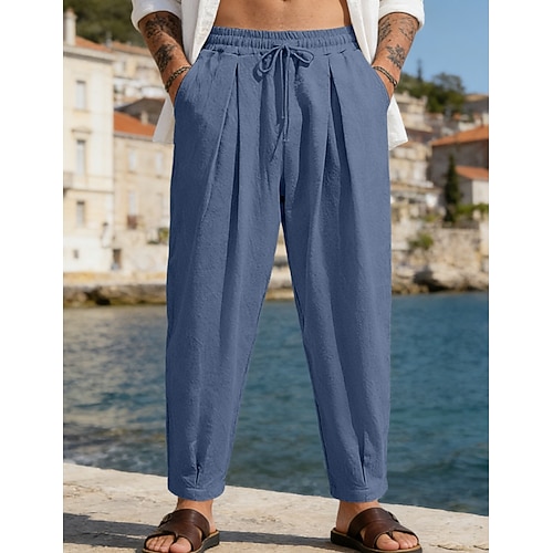 Per uomo Pantaloni di Lino Pantaloni Estivi Pantaloni da Spiaggia Coulisse Tasca Semplice Confortevole Traspirante Lunghezza intera Quotidiano Casa All'aperto Vacanza Semplice Nero Bianco Inelastico