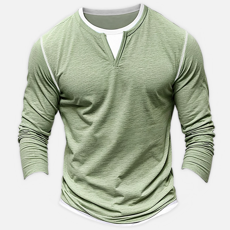 Men's Shirt V Neck Tee Long Sleeve Shirt Bamboo T-shirt Long Sleeve V Neck Spring Fall Solid Color Patchwork Daily Casual Street Style Fake two piece Outdoor Street Causal Light Blue Light Green