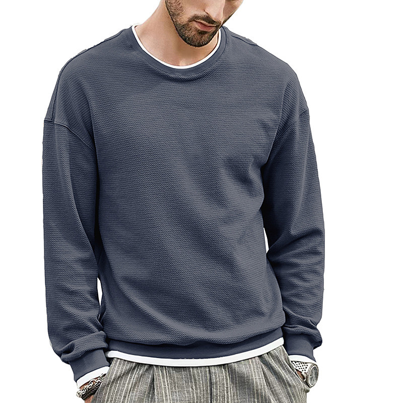 Men's Sweatshirt Pullover Hoodie Sweatshirt Wine Red Denim Blue Black Army Green Khaki Crew Neck Plain Patchwork Faux Two-piece Casual Daily Sports Outdoor Streetwear Cool Sportswear Spring Fall