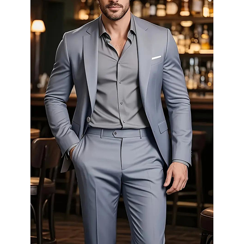 Men's Wedding Casual Business Suits Notch Lapel Black Navy Blue Daily Formal Solid Colored Tailored Fit 2 Piece Single Breasted Two-buttons