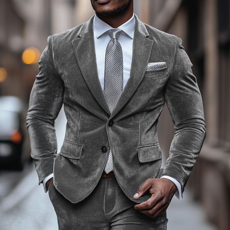 Men's Business Casual Corduroy Suit Notch Lapel Black Burgundy Business Casual Solid Colored Tailored Fit 2 Piece Single Breasted One-button