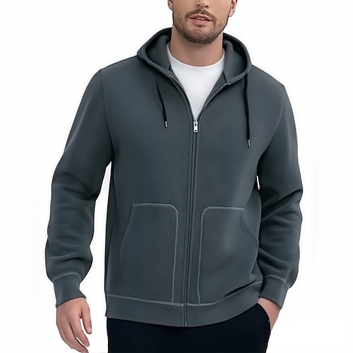 Per uomo Felpa con cappuccio a zip intera Felpa con cappuccio e zip Giacca in Pile Felpa con cappuccio in pile Nero Blu marino Cachi Grigio Con Cappuccio Semplice Con zip Patchwork Sport Outdoor