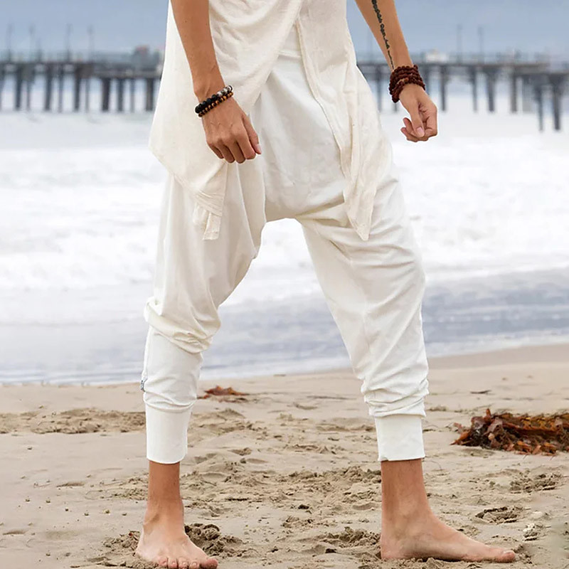 Men's Linen Pants Trousers Summer Pants Pocket Drop Crotch Plain Comfort Breathable Outdoor Daily Going out Fashion Casual Black White