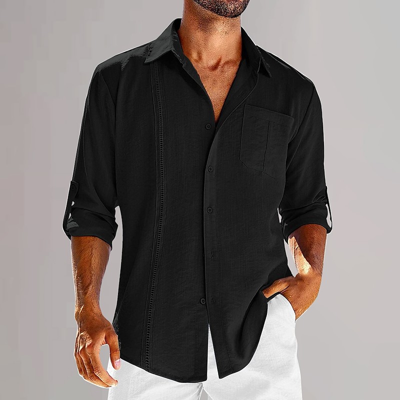 Men's Cotton Linen Shirt Plain Vacation Casual Black White Blue Long Sleeve Lapel Spring Summer Clothing Apparel