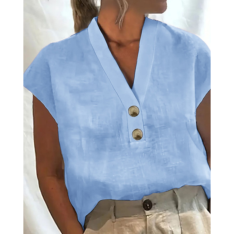 Women's T Shirt Plain Casual Short Sleeve V Neck Regular Tops Daily Weekend Buttons White Pink Green Light Blue Summer