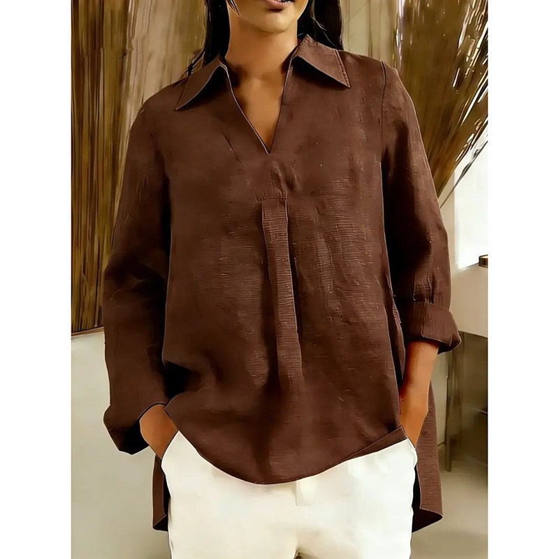 Women's Shirt Solid Color Plain Vintage Stylish Long Sleeve Shirt Collar Daily Holiday Blue Wine Navy Blue Brown Summer Spring