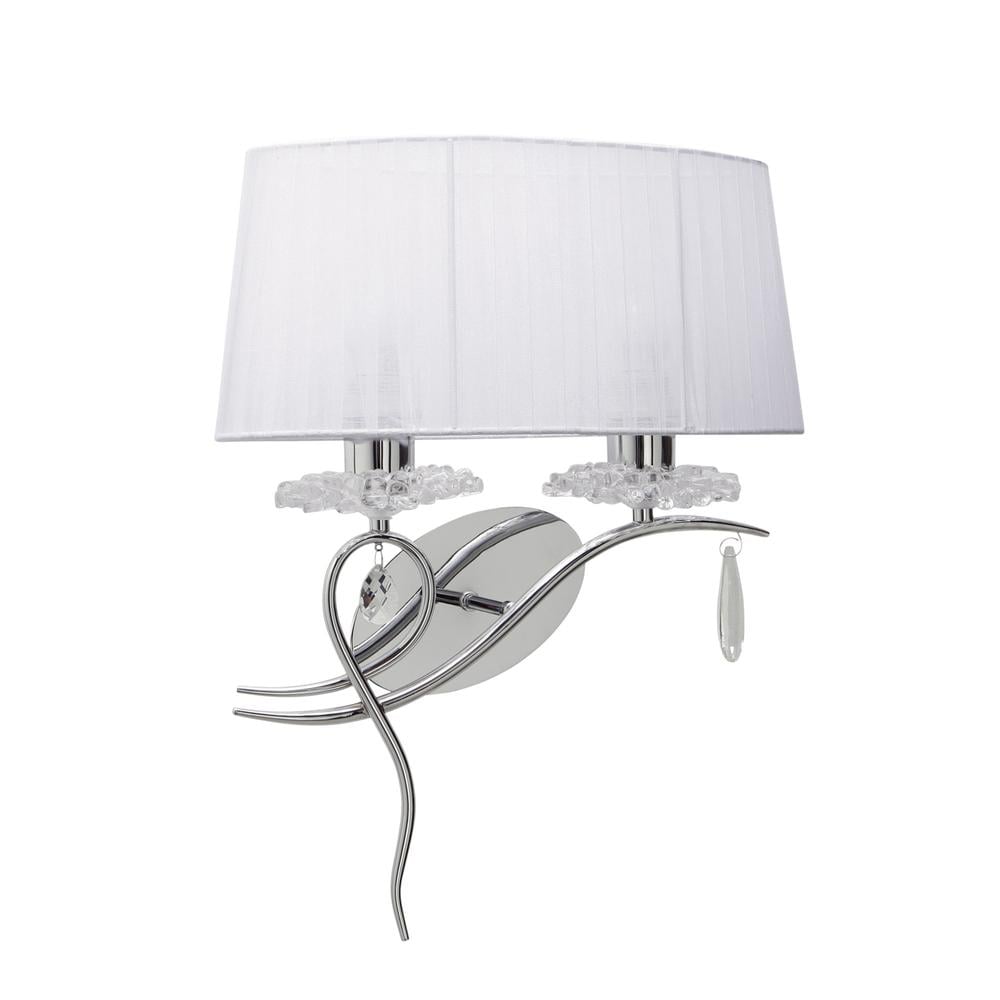 Louise Wall Light Right 2 Light E27 With White Shade Polished Chrome/Clear Crystal Mantra