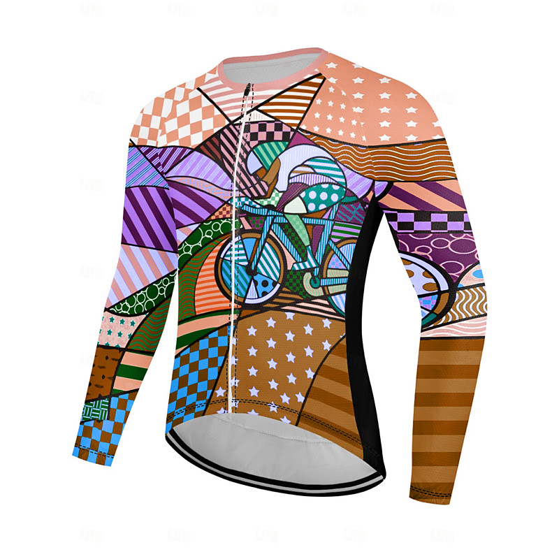 Men's Cycling Jersey Geometic Long Sleeve Bike Top with 3 Rear Pockets Mountain Bike MTB Road Bike Cycling Anti-slip Strap Quick Dry Reflective Strips Back Pocket Sports Blue Brown Clothing Apparel