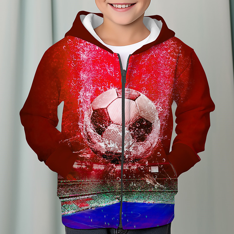 Boys 3D Football Hoodie Coat Outerwear Long Sleeve 3D Print Fall Winter Fashion Streetwear Cool Kids 3-12 Years Outdoor Casual Daily Regular Fit