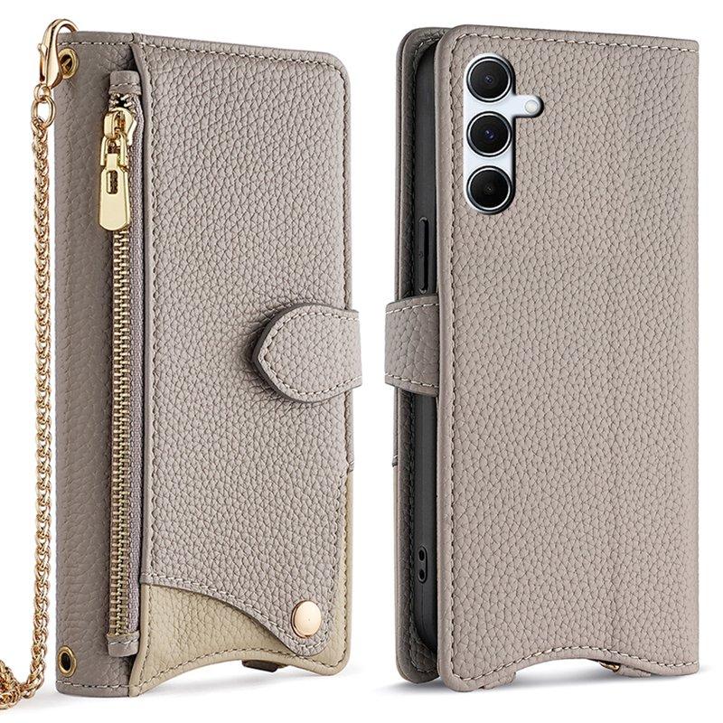Samsung Galaxy A35 5G Fodral Äkta Läder Ställfunktion - Grå