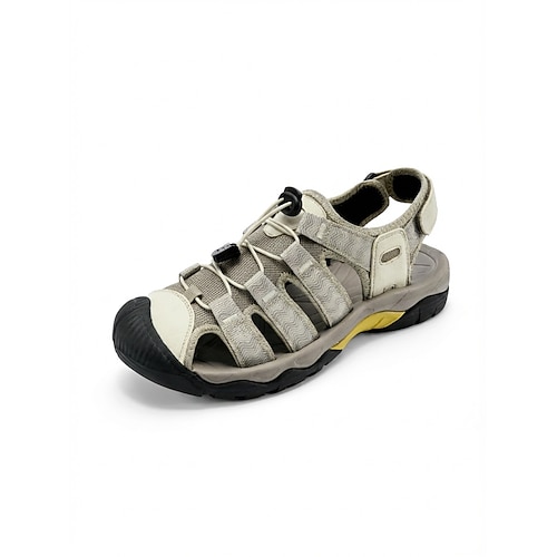 Sandali da pescatore da uomo beige a punta chiusa, traspiranti, comodi e leggeri, ideali per l'estate, perfetti per resort all'aperto, viaggi, tempo libero in tropici e attività con clima caldo.
