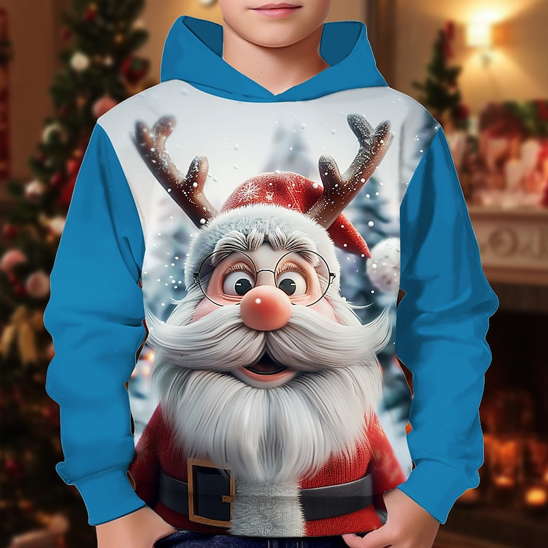 Christmas Boys' 3D Graphic Santa Claus Elk Hoodie Long Sleeve Spring Fall Fashion Streetwear Kids 4-12 Years Hooded Outdoor Casual Daily Regular Fit