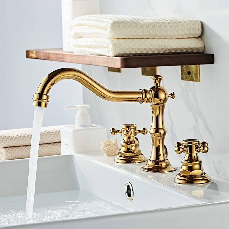 Antique Copper Bathroom Sink Faucet,Widespread Black Widespread Two Handles Three Holes Bath Taps with Hot and Cold Switch